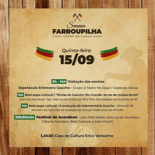 Veja a progrmação completa da Semana Farroupilha em Capão da Canoa RS - Casa de Cultura Érico Veríssimo
